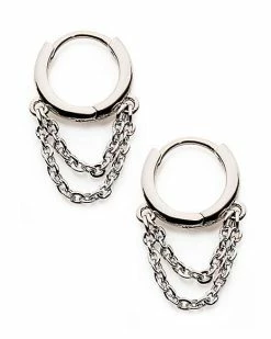 Best deal π― 2 Row Chain Dangle Huggie Hoop Earrings – 20 Gauge π