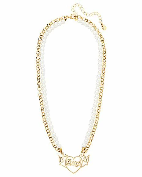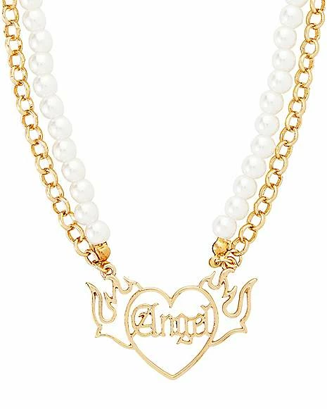 Hot Sale π 2 Row Flaming Heart Angel Pearl-Effect and Chain Necklace β¨