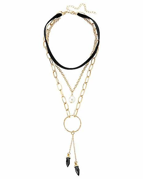 Buy π₯° 3 Row Pearl-Effect Chain and Choker Necklace π