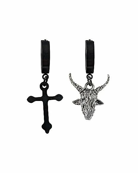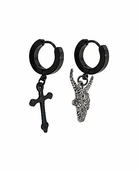 Hot Sale π Baphomet and Cross Huggie Dangle Earrings – 18 Gauge β