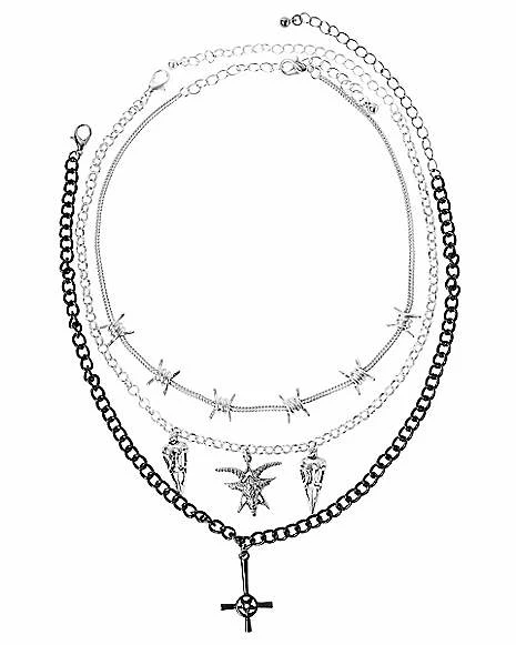 Outlet π Barbed Wire Skull and Cross Necklace Set π₯°