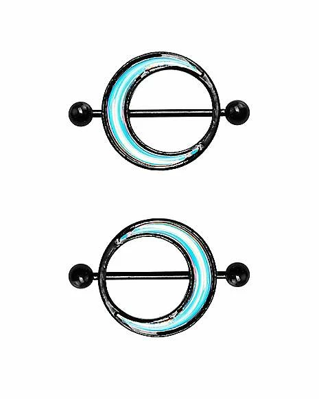 Discount β¨ Black and Blue Crescent Moon Nipple Shields – 14 Gauge π―