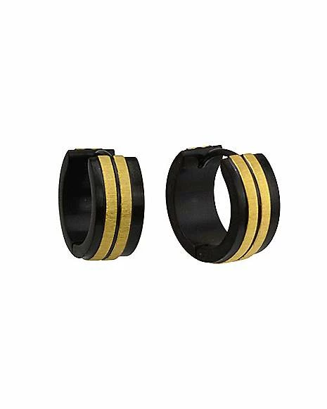Top 10 π― Black and Goldtone Double Stripe Huggie Hoop Earrings – 18 Gauge π