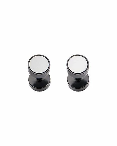 Cheap π― Black and Silver Fake Plugs 1 Pair – 18 Gauge β
