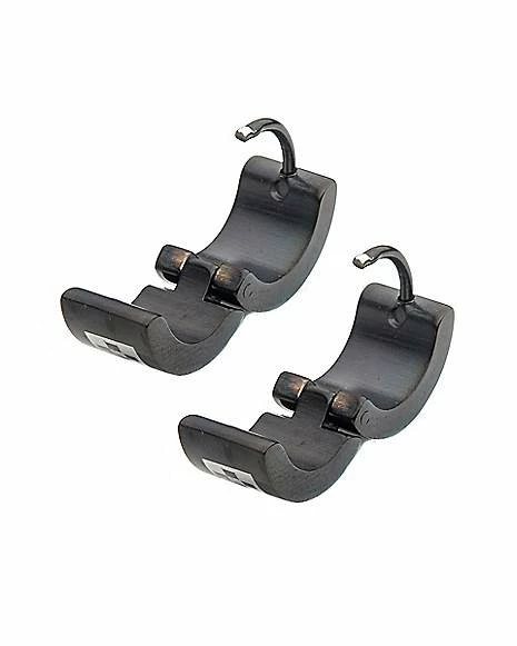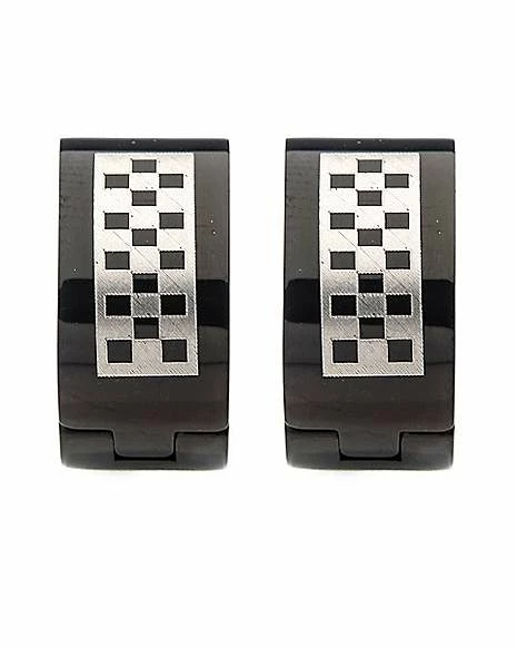 Outlet β Black and Silvertone Checkered Huggie Hoop Earrings – 18 Gauge π