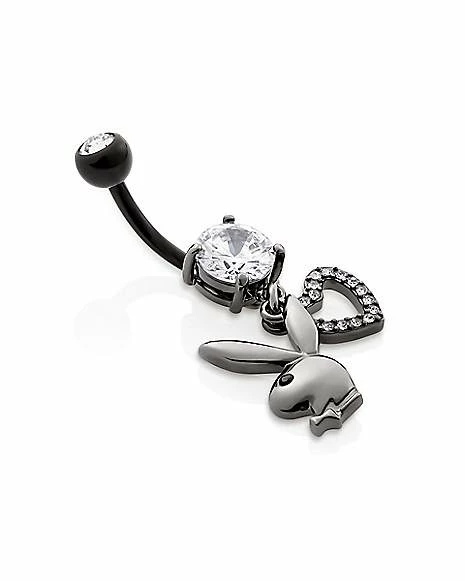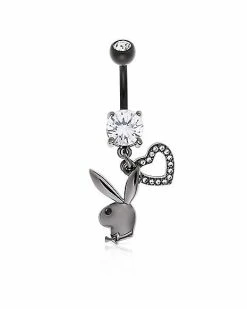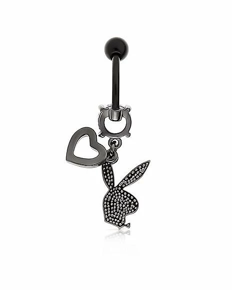 Wholesale β Black Clear CZ Playboy Bunny Heart Dangle Belly Ring – 14 Gauge π₯°