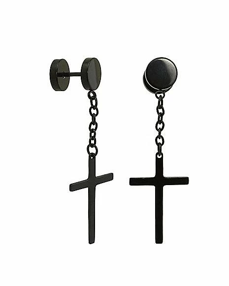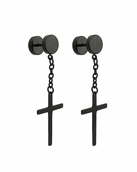 Budget π Black Cross Chain Dangle Fake Plugs – 18 Gauge π