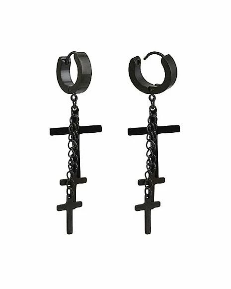 Best Sale ✨ Black Cross Chain Dangle Huggie Earrings 🤩