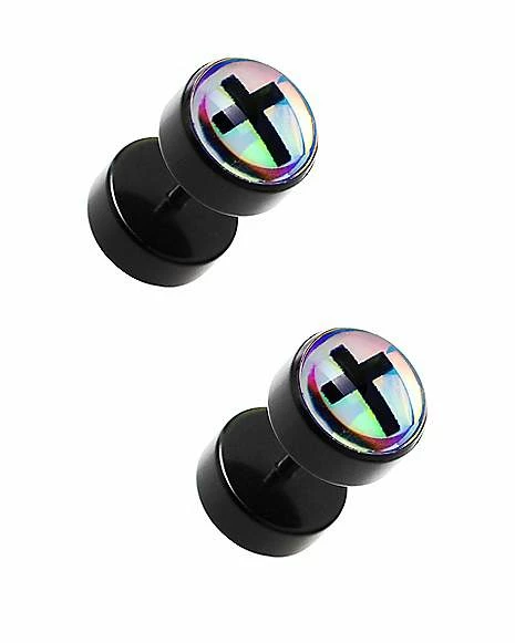 Best Sale π Black Cross Fake Plugs – 18 Gauge β