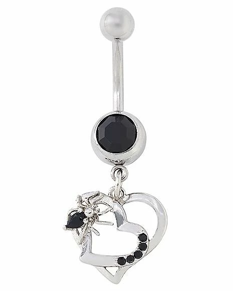 Cheap π Black CZ Spider Heart Dangle Belly Ring – 14 Gauge π