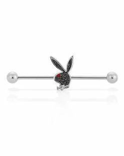 Flash Sale π€© Black Glitter Playboy Bunny Industrial Barbell – 14 Gauge π