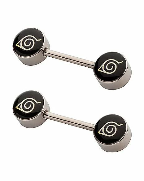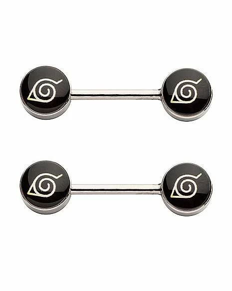 Best deal π Black Hidden Leaf Naruto Shippuden Nipple Barbells – 14 Gauge π