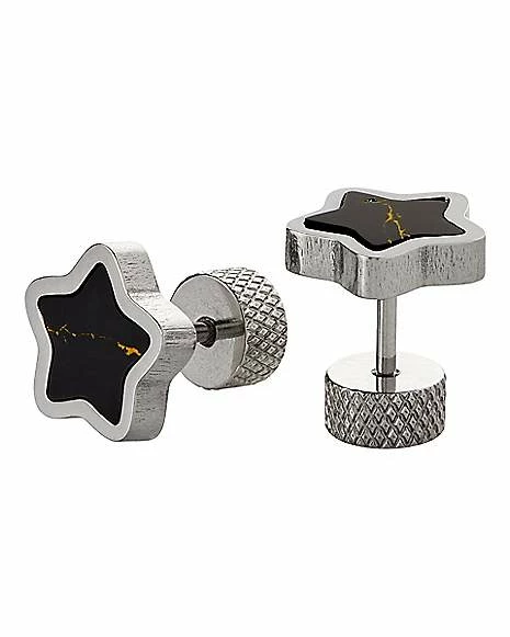 Best Pirce β€οΈ Black Marble Star Fake Plugs – 18 Gauge π₯
