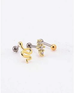 Brand new π Multi-Pack CZ Goldtone Snake Cartilage Barbells 3 Pack – 16 Gauge π