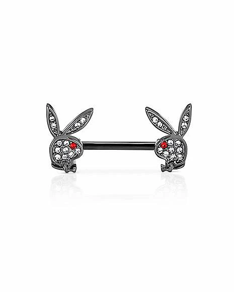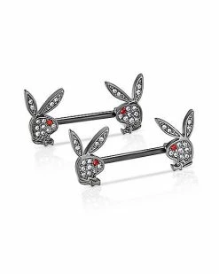 Flash Sale π Black Playboy Bunny Gem Nipple Barbells – 14 Gauge π