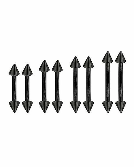 Promo π₯° Black Spiked Curved Barbell 8 Pack – 16 Gauge β€οΈ