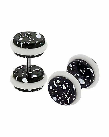 Make your ears a work of art with the Black Splatter Fake Plug Set.