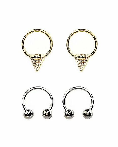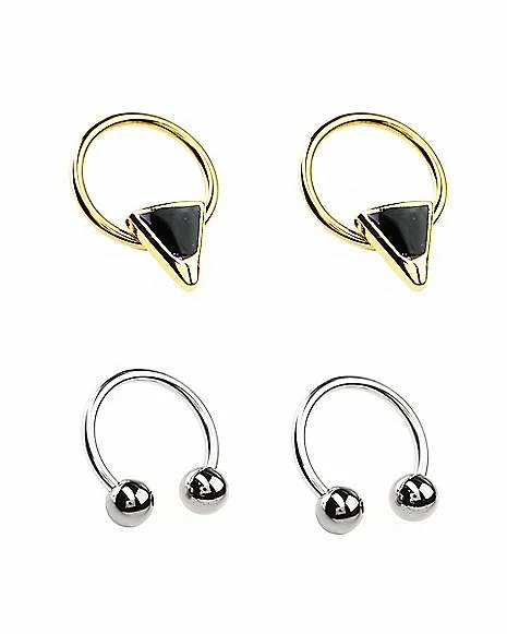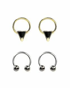 Budget π€© Black Triangle Goldtone Captive Rings and Horseshoe Rings 2 Pair – 16 Gauge π€©