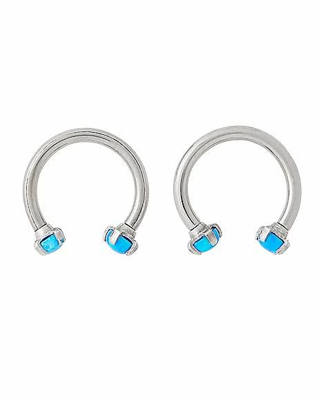 Promo 🔔 Blue Faux Opal Titanium Horseshoe Rings – 16 Gauge 👍