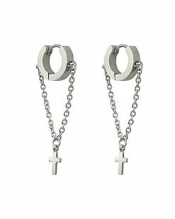 Top 10 ❤️ Chain Cross Dangle Hoop Huggie Earrings – 18 Gauge ❤️