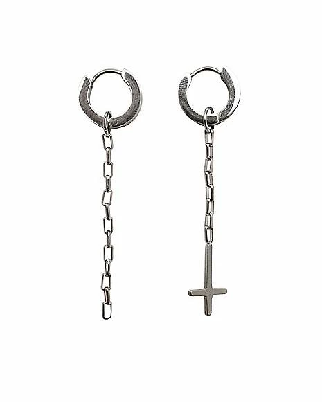 Cheapest π Chain Cross Dangle Huggie Hoop Earrings – 18 Gauge π