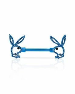 New 👍 CZ Blue Playboy Bunny Cutout Nipple Barbells – 14 Gauge ✔️