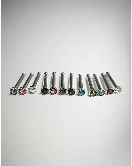 Best Pirce ✔️ Colored Gem-Effect Stud Nose Rings – 12 Pack ✨