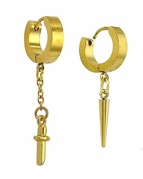 Best Pirce ⭐ Cross and Sword Dangle Huggie Hoop Earrings – 18 Gauge ✔️
