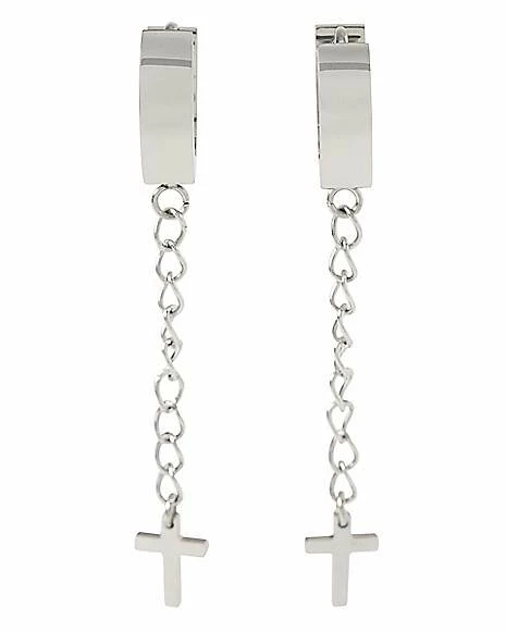 Cheapest π Cross Chain Dangle Huggie Hoop Earrings – 18 Gauge π