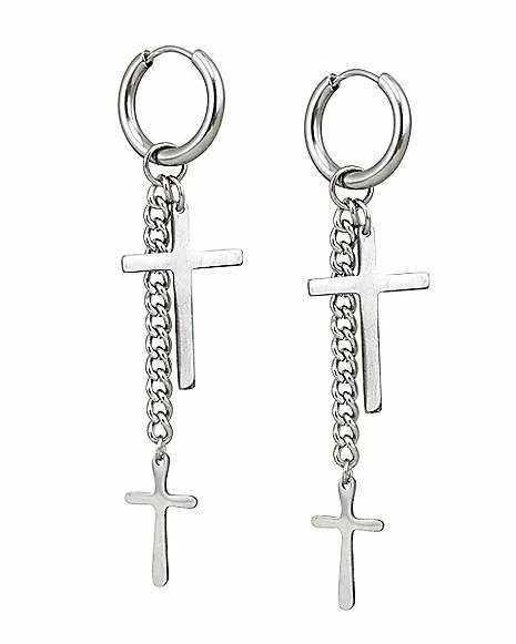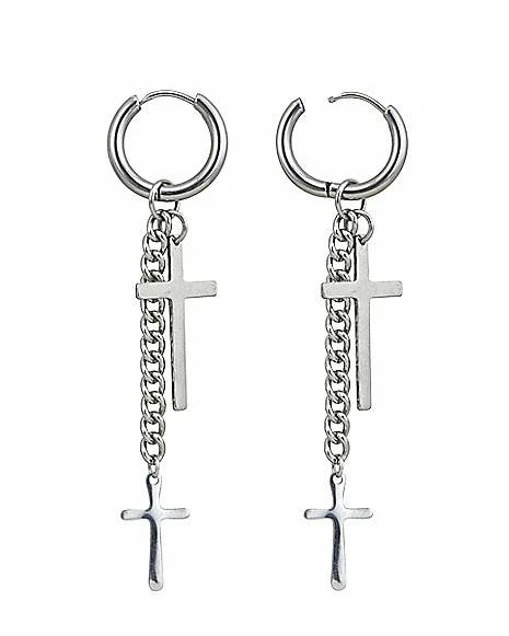 Cheap π Cross Chain Huggie Dangle Earrings – 18 Gauge π€©