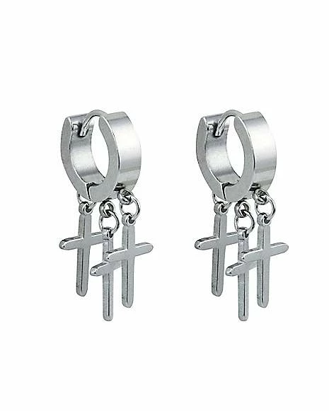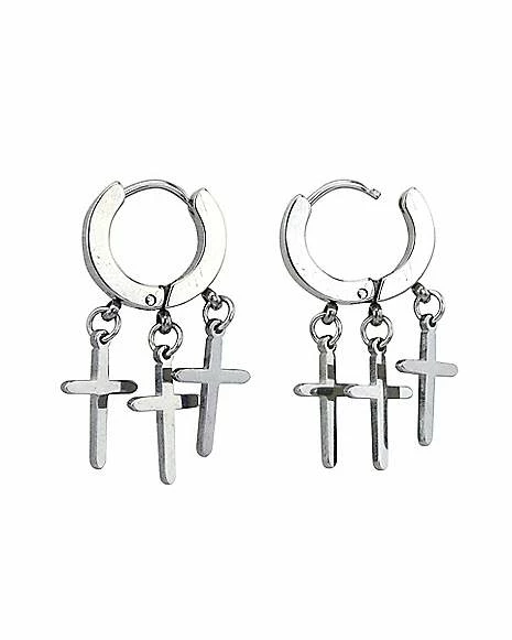 Promo π Cross Cluster Dangle Huggie Hoop Earrings – 18 Gauge π
