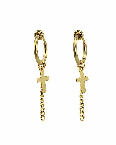 Be the first to review “Flash Sale π Cross Goldtone Dangle Fake Hoop Earrings β 16 Gauge β” Cancel reply