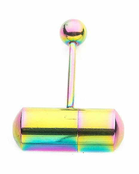 Discount π Oil Slick Weed Leaf Belly Ring – 14 Gauge π