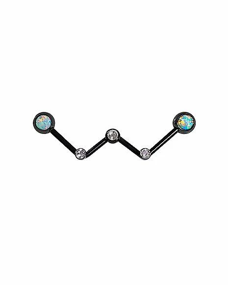 New 𧨠CZ and Faux Opal Zig Zag Industrial Barbell – 14 Gauge π