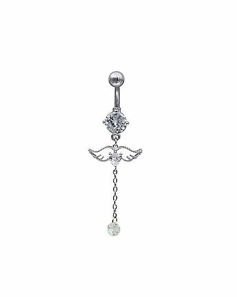 Promo ⭐ CZ Angel Wings Dangle Belly Ring – 14 Gauge ✔️