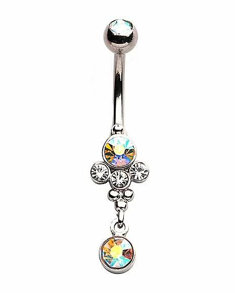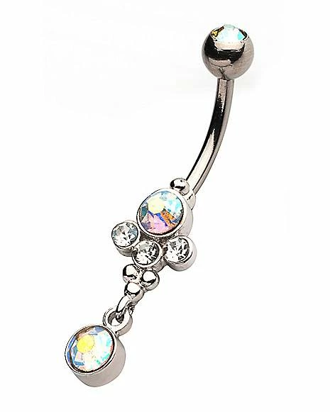 Discount 𧨠CZ Aurora Borealis Drip Dangle Belly Ring – 14 Gauge π