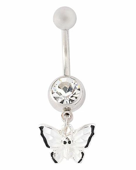 Brand new π CZ Black and White Butterfly Dangle Belly Ring – 14 Gauge β
