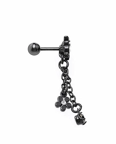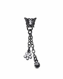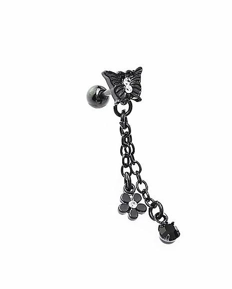 Hot Sale π CZ Black Butterfly Flower Chain Dangle Cartilage Earring – 18 Gauge β