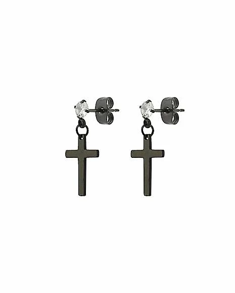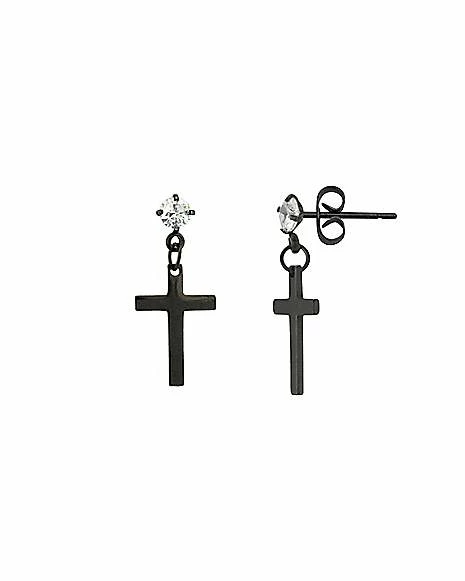 Best deal π CZ Black Cross Dangle Stud Earrings – 20 Gauge β