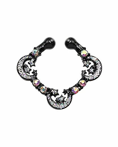 Wholesale β CZ Black Moon and Star Fake Septum Ring π₯°