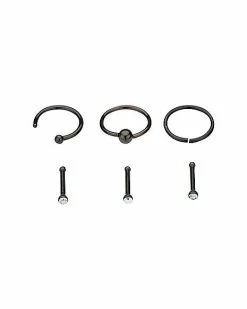 Cheapest π CZ Black Nose Bone and Hoop 6 Pack – 18 Gauge π