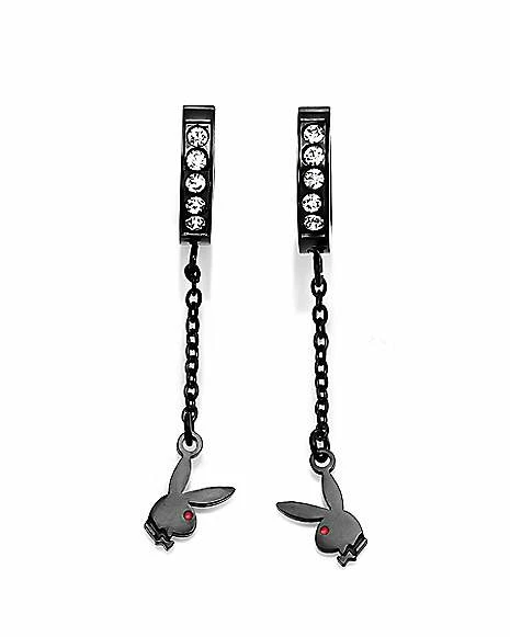 Best reviews of ❤️ CZ Black Playboy Bunny Chain Dangle Huggie Hoop Earrings ⭐