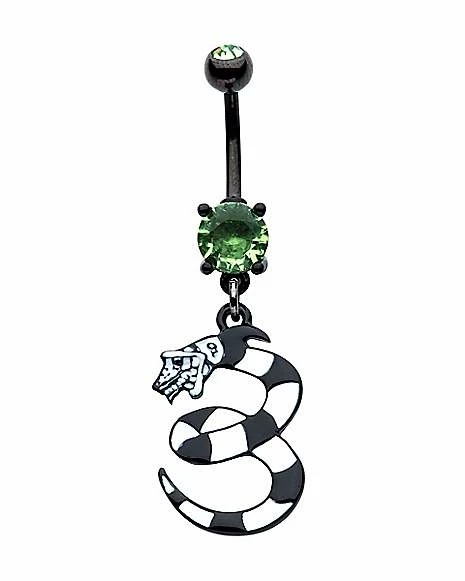 Discount π€© CZ Black Sandworm Beetlejuice Dangle Belly Ring – 14 Gauge π₯