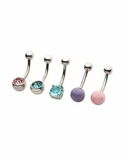 Deals π Multi-Pack Multi-Color Pearl-Effect Belly Rings 5 Pack – 14 Gauge π