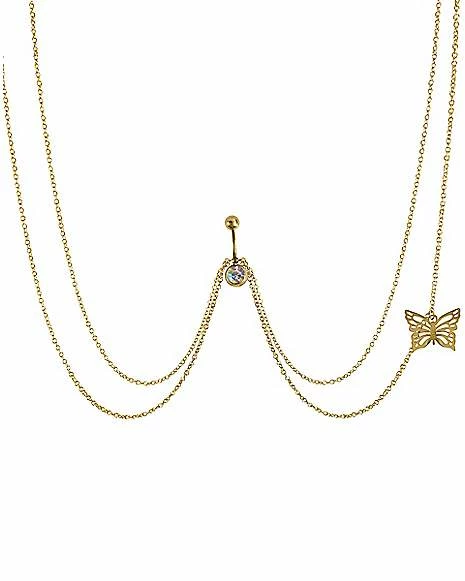 New β CZ Butterfly Chain Belly Ring – 14 Gauge π