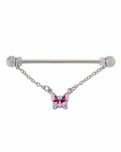 Best Pirce π CZ Butterfly Chain Dangle Industrial Barbell – 14 Gauge π₯