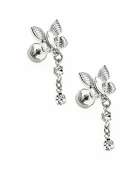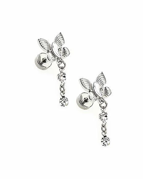 New π CZ Butterfly Dangle Fake Plugs – 18 Gauge π