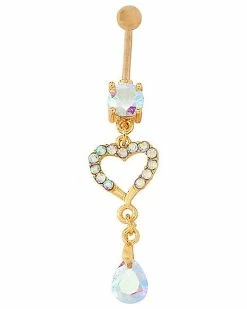 Wholesale β Black and Goldtone CZ Heart Dangle Belly Ring – 14 Gauge π
