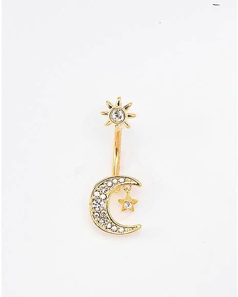 Deals π Round CZ Flower Goldtone Dangle Belly Ring – 14 Gauge π₯°
