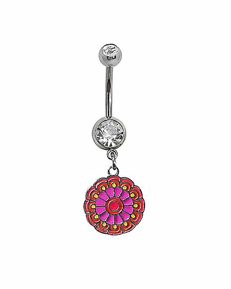 Best Pirce π CZ Colorful Retro Flower Dangle Belly Ring – 14 Gauge π